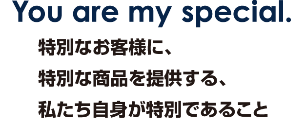 販売をさせていただくお車、アフターケアでお預かりをするお車、お取り扱いをさせていだたく全ての商品は“お客様にとっての特別”です。